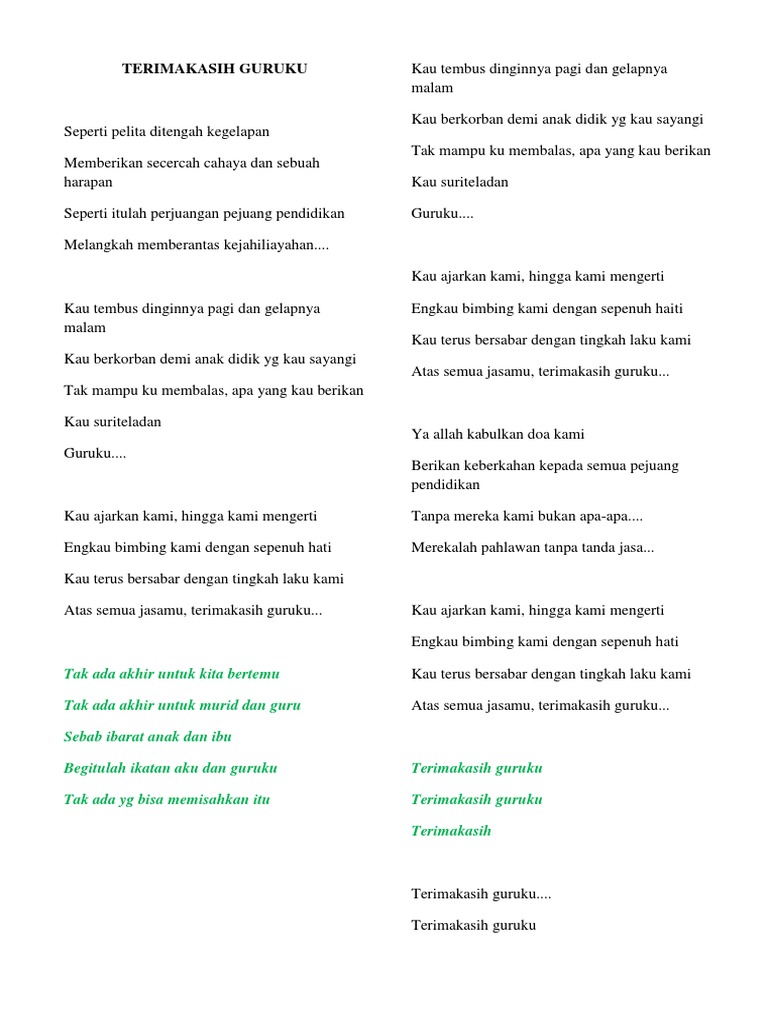 Sebelum aku trauma mencintai sosok yang baru lagi. Lagu terima kasih guruku diciptakan oleh sri widodo. Kau selalu ajarkan kami tentang arti hidup Hingga puji syukur kunaikan selalu ku ucap Lihat.